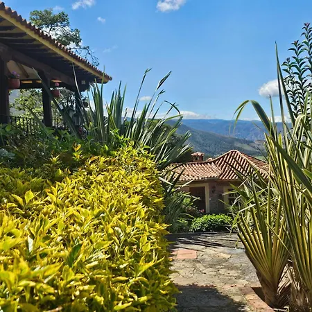 The Villa de Leyva accommodation offers garden views. Bathroom facilities also include a separate toilet and a shower. There are toiletries and towels for guests' comfort.